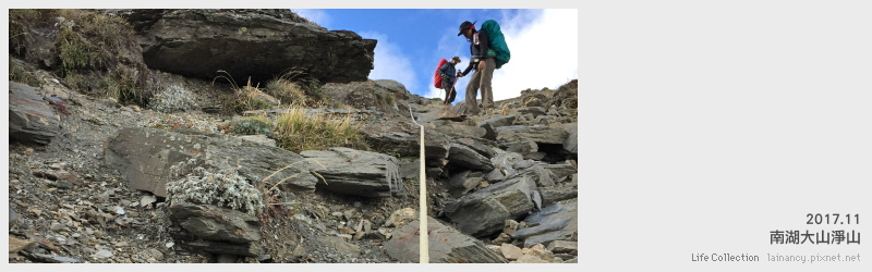 接下來的路徑變化也差不多,直到來到一處岩壁旁窄道出現拉繩。