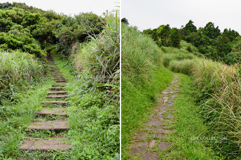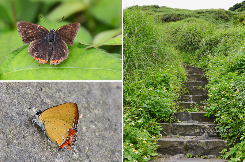 就是步道兩旁的花草佔據了部份階梯,猜想是適逢陽明山蝴蝶季,便任花草蔓延,好讓蝴蝶們棲息及採蜜,