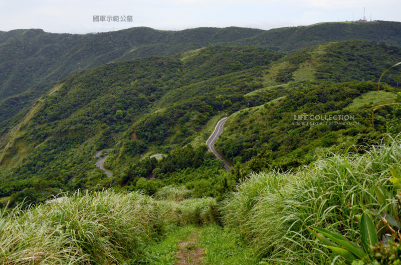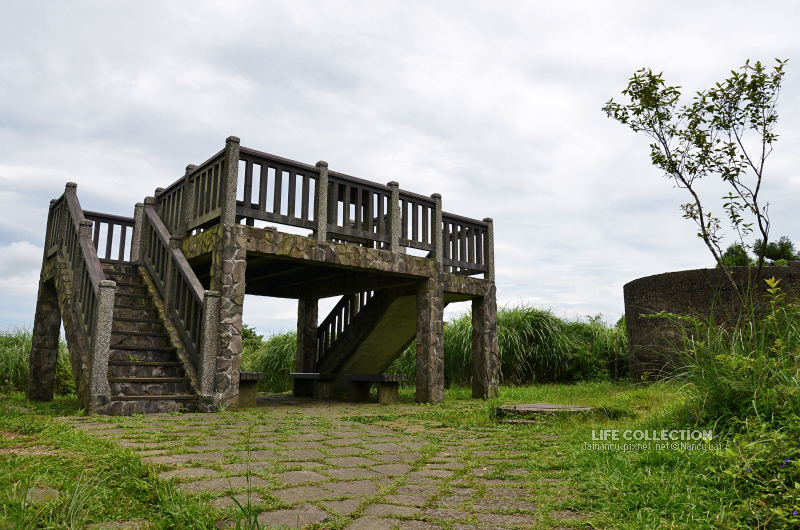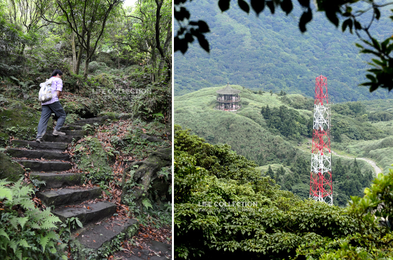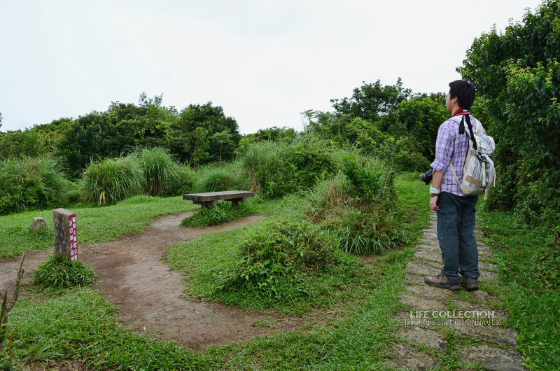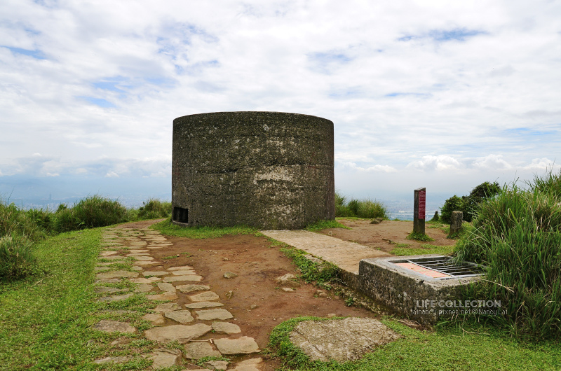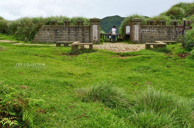 從擎天崗離開,經過輕鬆的緩下坡,再緩上坡後,來到步道途中的碉堡與觀景平台,標高 765 公尺,
