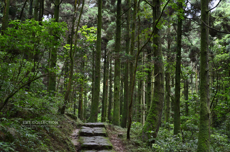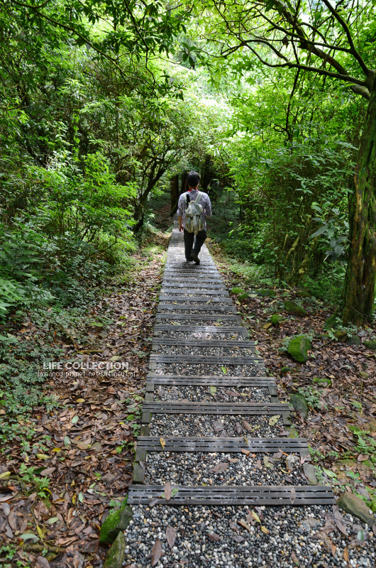 續走,經過闊葉林給我們短暫的涼爽,這裡有段石子階梯。