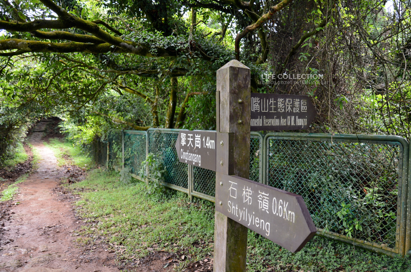 下了竹篙山走回環形步道,在叉路左轉往冷水坑及絹絲瀑布方向的步道續走,