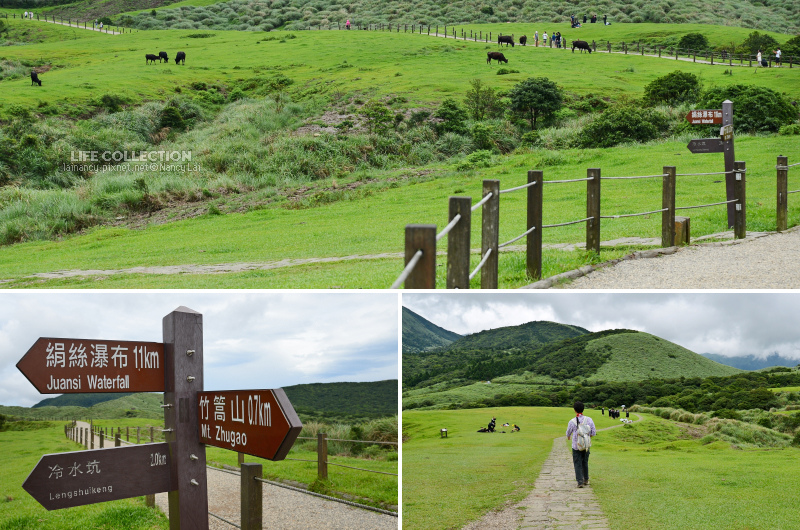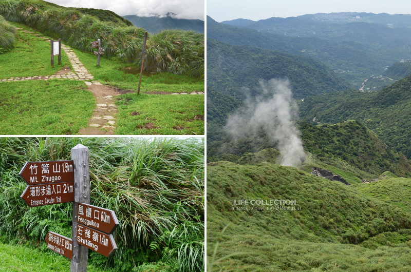 進入擎天崗大草原環形步道範圍,左走前往竹篙山,右走為路線封閉,探個頭可以看到冒著白煙的「大油坑」,
