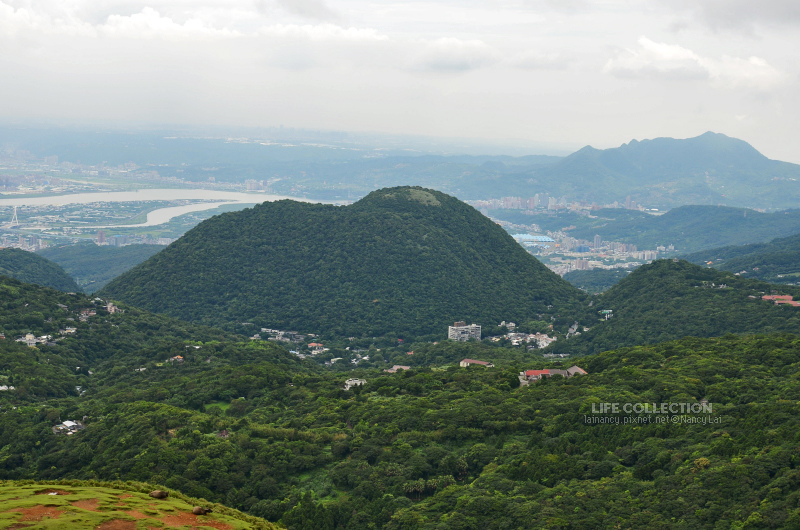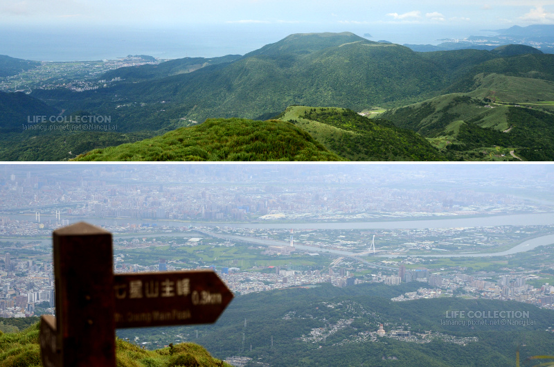 七星山南峰後方的台北盆地上空也罩著灰灰濛霧。