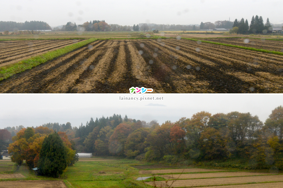 上午 8 點,我們離開雫石プリンスホテル,一路看著細雨落在收耕的田地裡,充斥著大地色的乾枯,