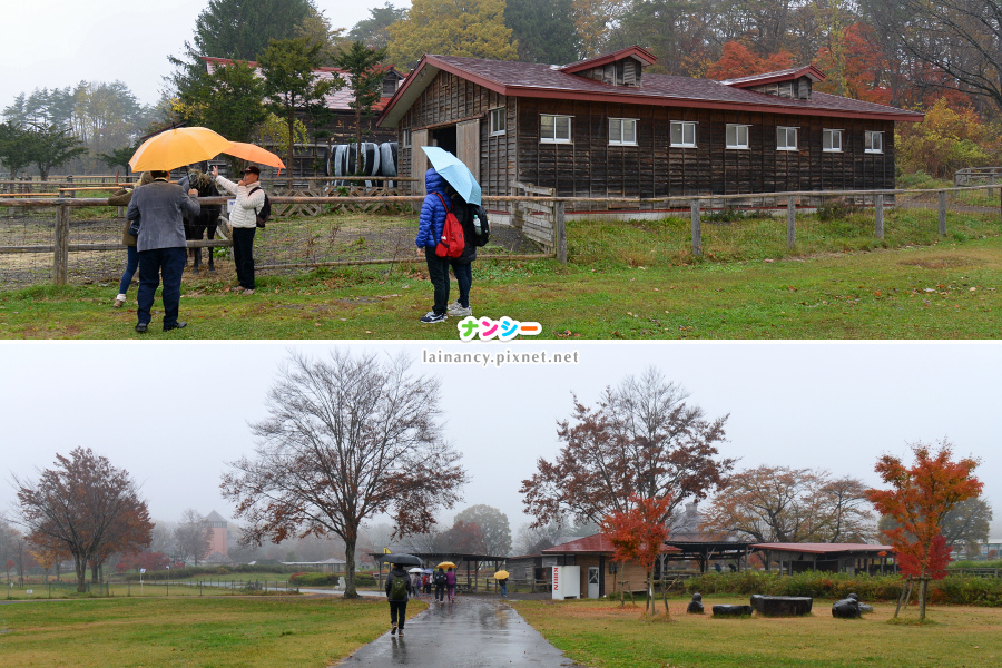 上午 8 點半多來到「小岩井農場」,我們跟著導遊進入園區,撐著傘散步。
