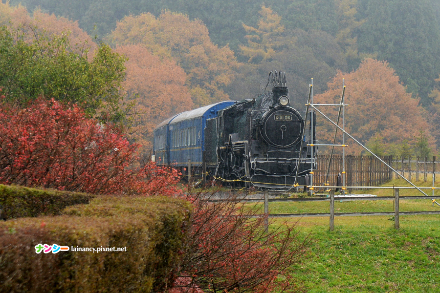 走出園區來到入口處旁,原來小岩井的木柵欄不只關了動物,還有蒸汽機車 SL D51-68,