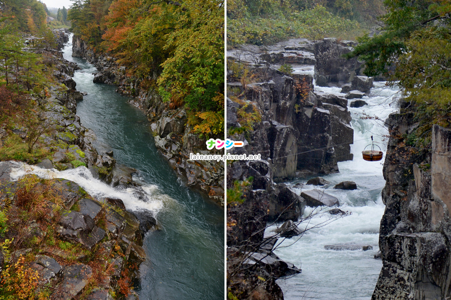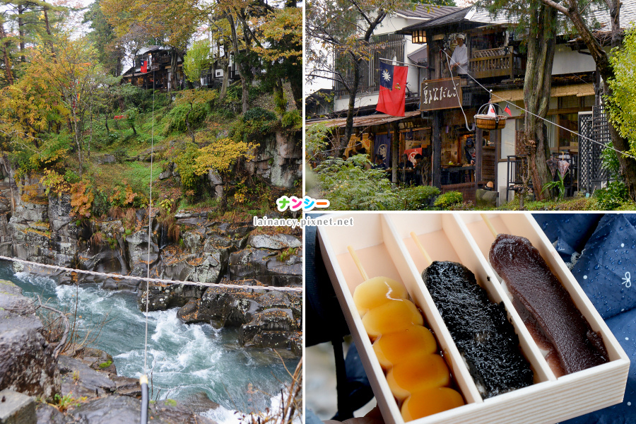 店家「かっこうだんご」販賣獨特的「郭公だんご」(郭公糰子),利用吊籃橫越溪谷送到客人手中,