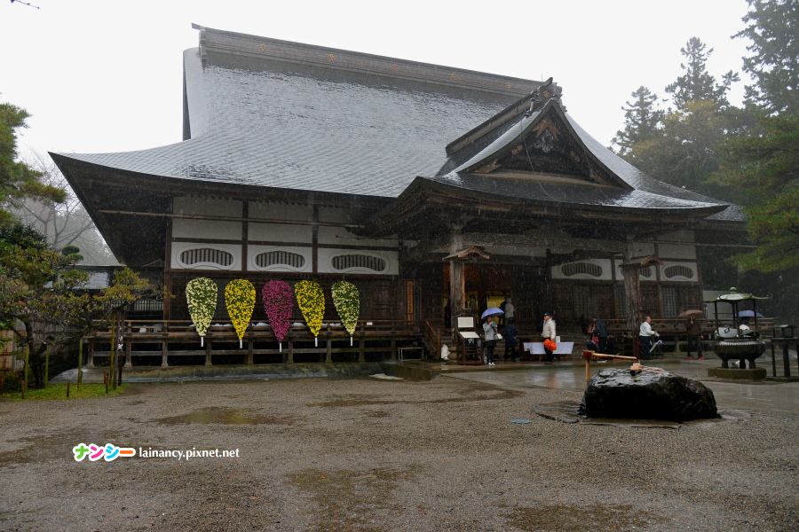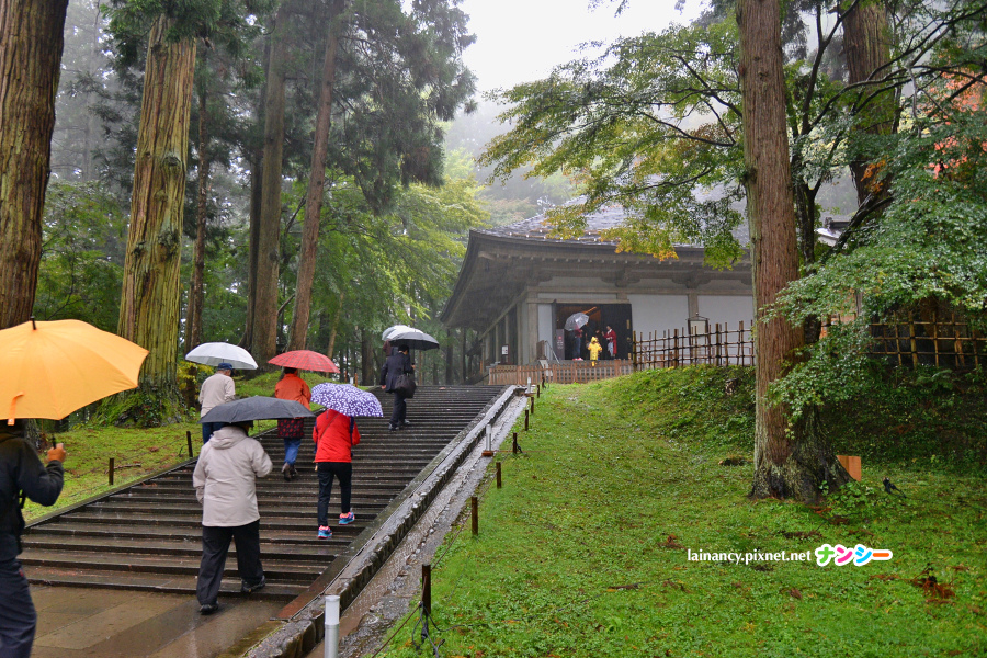 中午 12 點半多,來到中尊寺,頭上的落雨完全沒有要停止的意思,圖為「阿弥陀堂」。