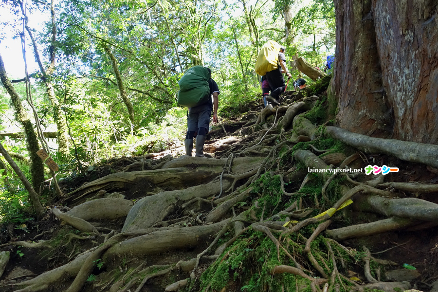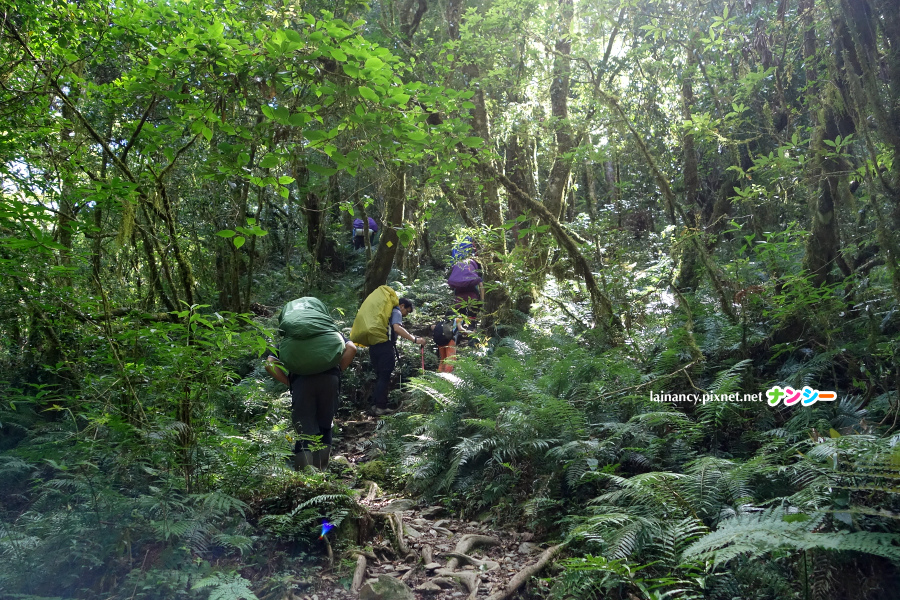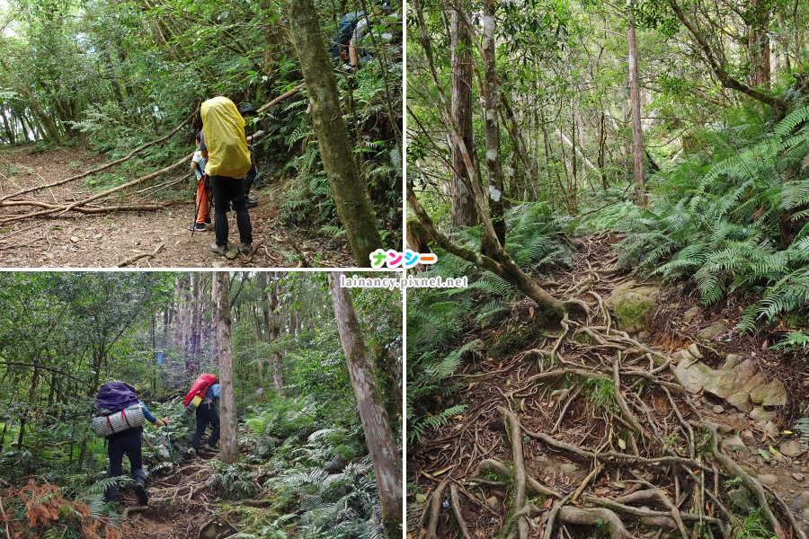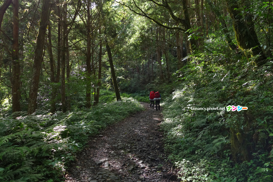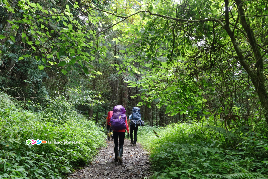 走進樹林一路往上,路徑不算難辨識,也有布條可以跟,多留神一下,不會迷路。