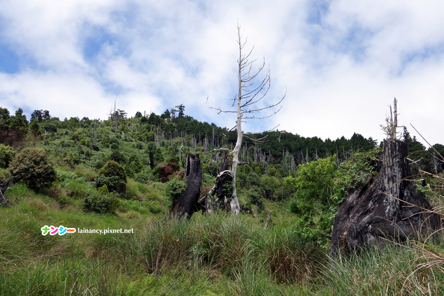 接下來的路段芒草沒有那麼密集了,還可以欣賞枯木美景。