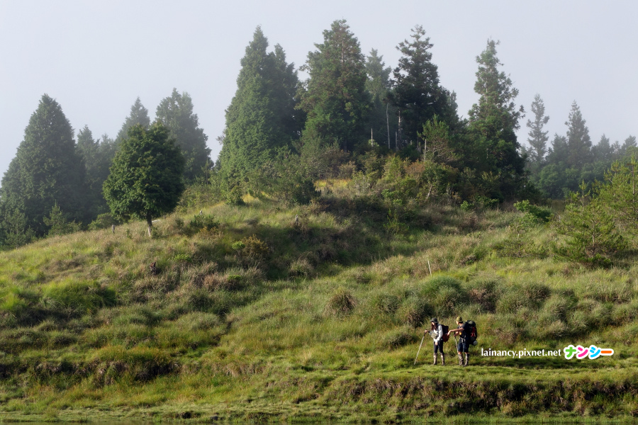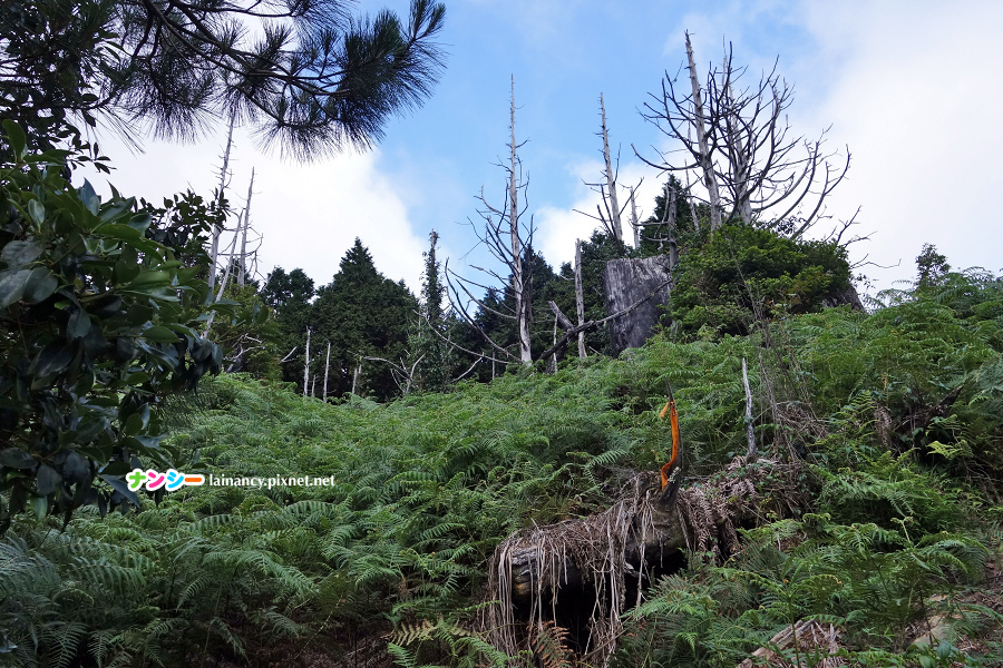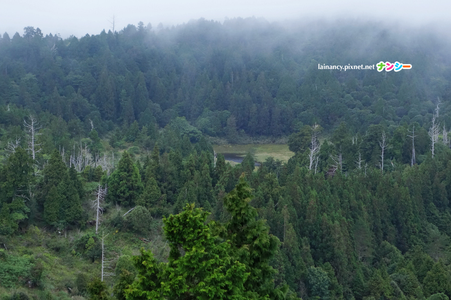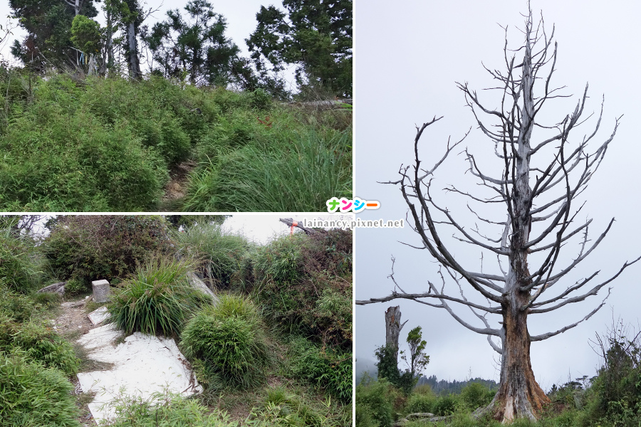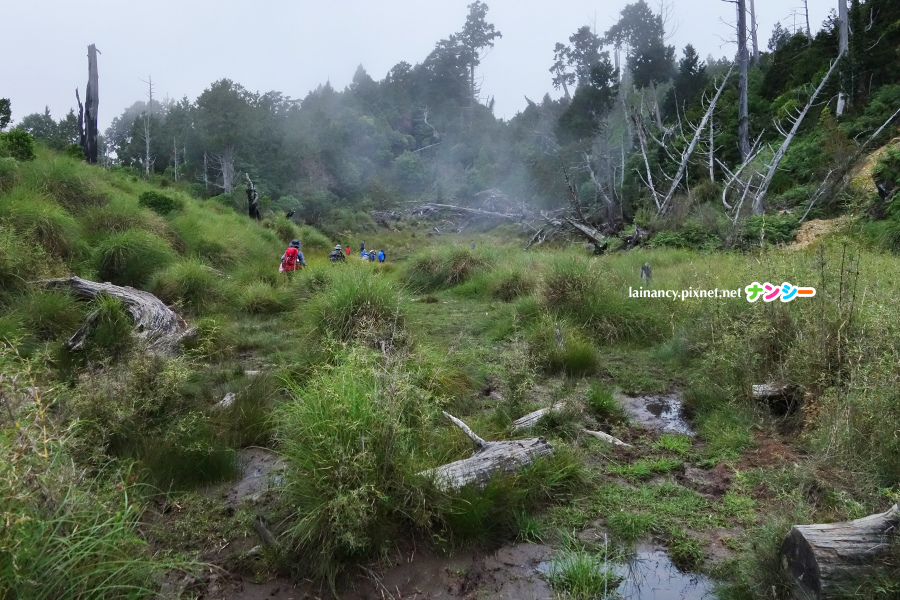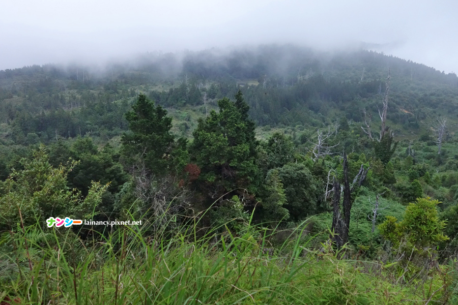 走出樹林來到開闊處,可惜雲低飄渺,不然這裡可是有群山展望的。