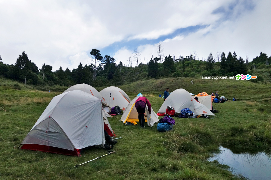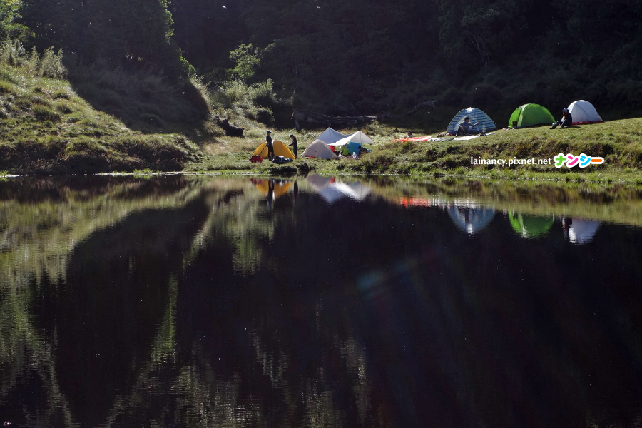 下午 2 點抵達湖邊,趕緊卸下背包幫忙,夥伴們帳篷都快搭好了。