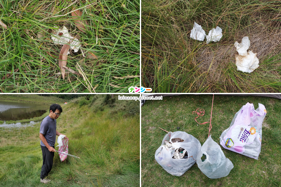 右下:這是今日第一回合所撿拾的垃圾,除了衛生紙,大部份是小垃圾。