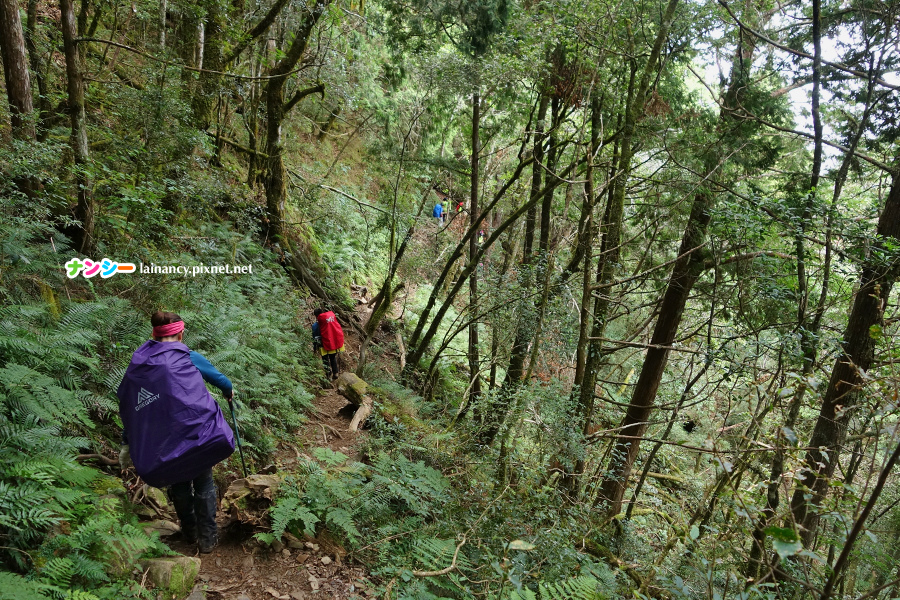 右圖:回程沒什麼休息,畢竟下坡還是比較不費力,很快就來到神木登山口前的陡下坡。