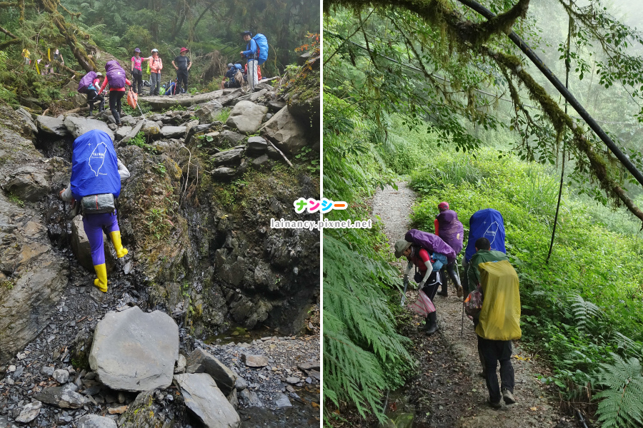 左圖:登山口開始一路陡上,有些人踢林道容易踢到厭煩,相信現在上坡反而想念林道。(只要沒有螞蟥,我是愛林道的)