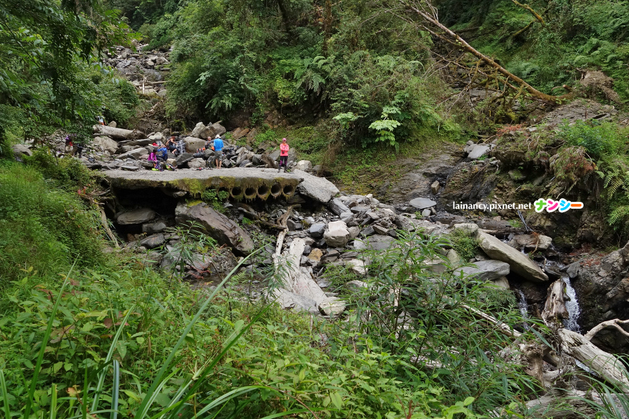上午 12 點前回到加納富溪,此方向可以看到過水路面的結構,也看得出溪谷的崩塌,溪流上散落的石塊與樹幹。