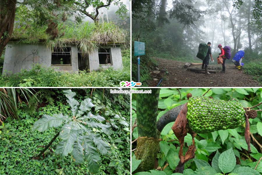左上:中午 12 點前,抵達往檜木池的岔路,編號標示 019,我們在這裡休息吃午餐。
