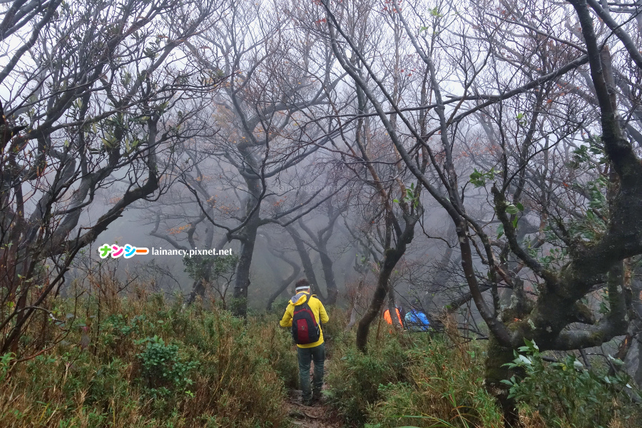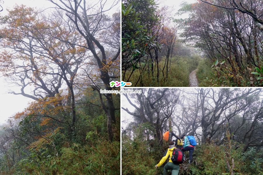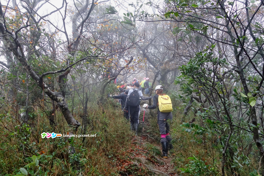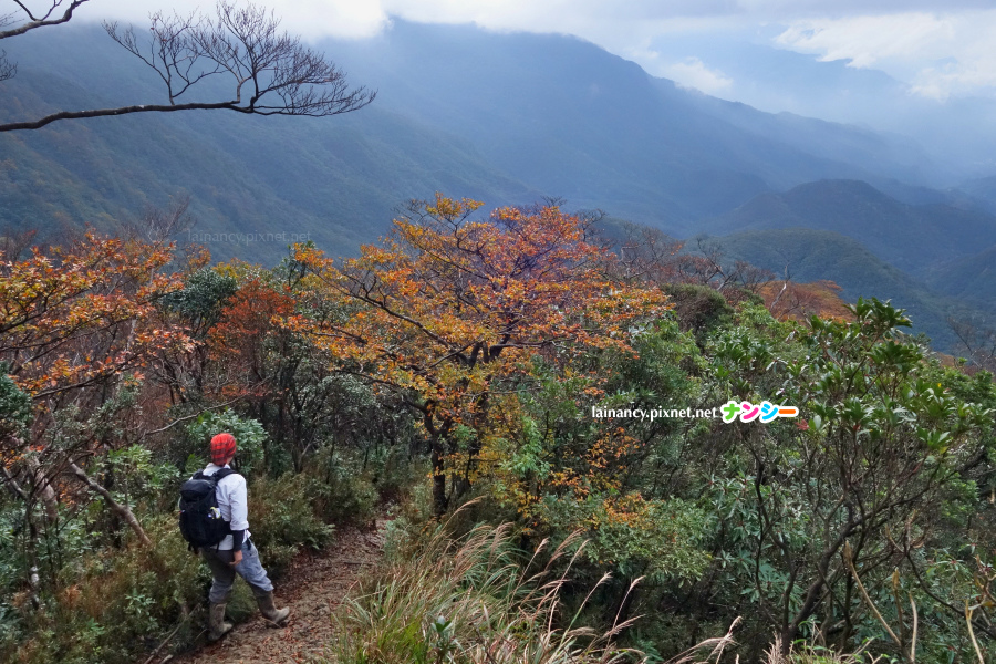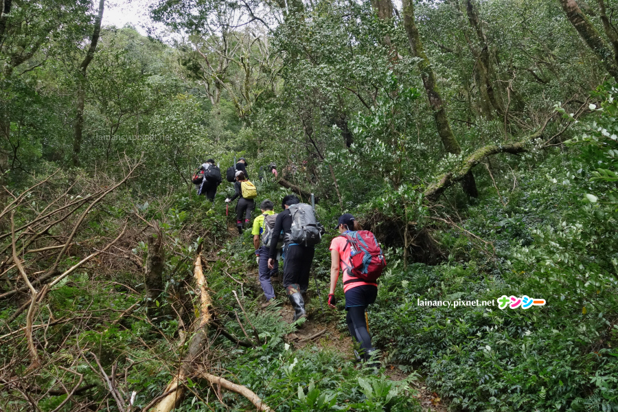 其實登頂的有點晚,大家稍稍加快步伐下山,不過稜線總是起伏,說是下山也是會遇見上坡的。