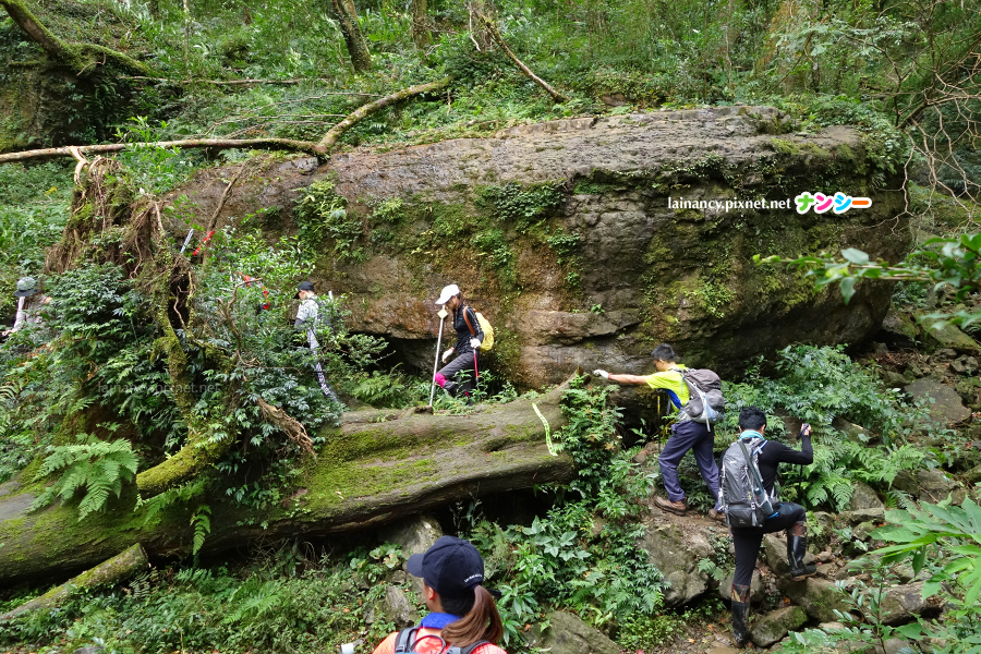 中午 12 點前,我們離開木屋遺址,開始進入最有趣的路徑,就是手腳並用的一路陡上。
