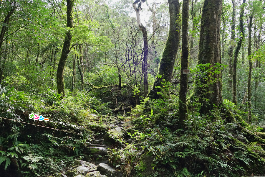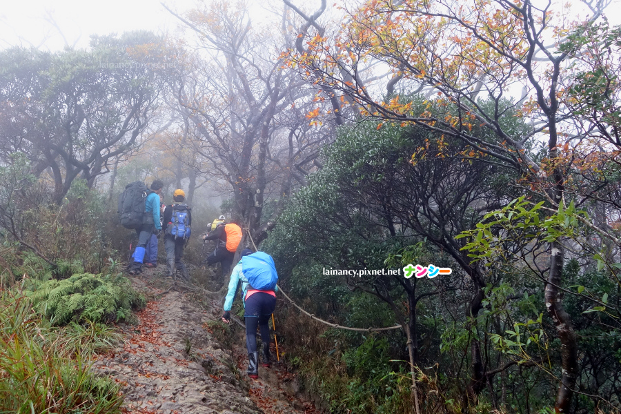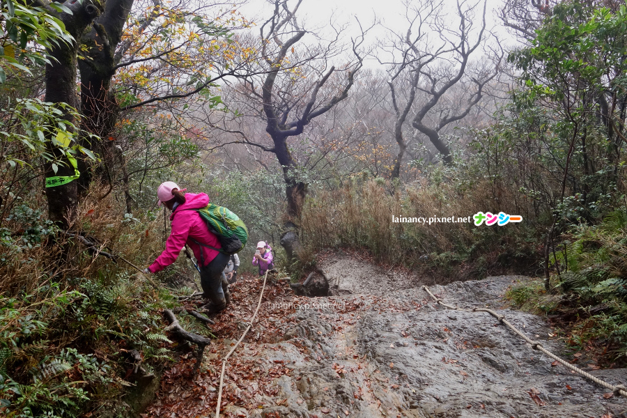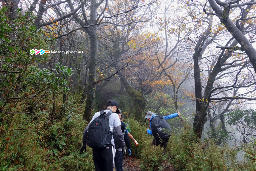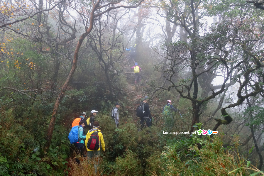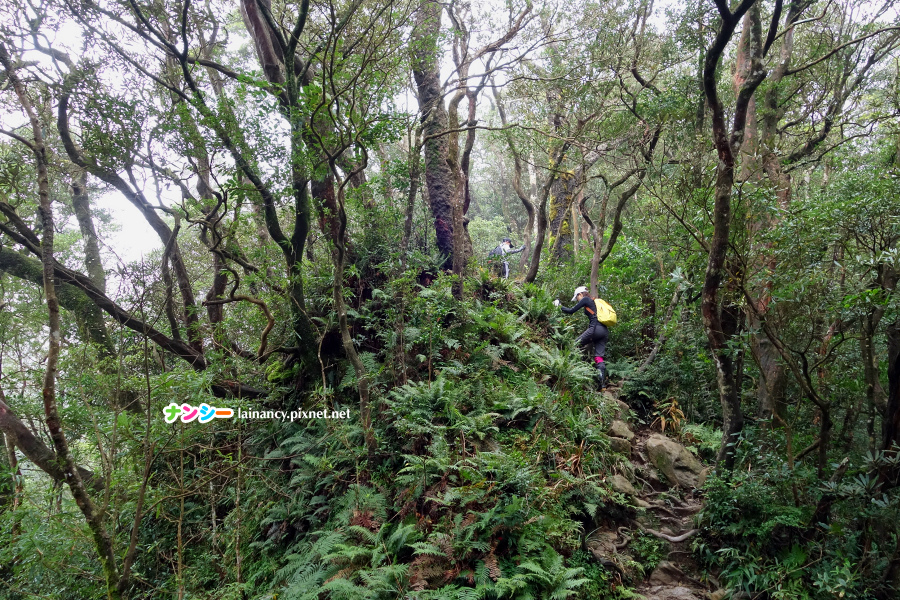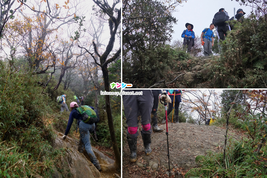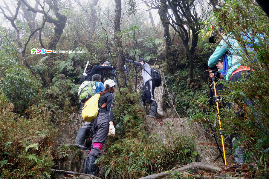 相較於滑溜溜帶著泥土的岩石路徑,走木梯省力多了,不過溼滑的狀態下,面對木梯還是要踏穩當心。