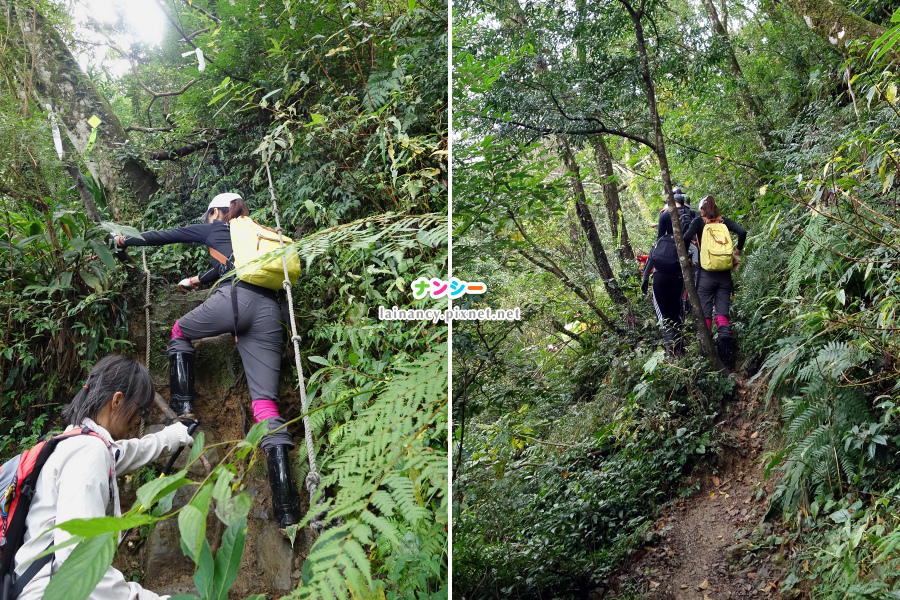 眼前的土石壁就是路徑,落差大就得拉繩而上。