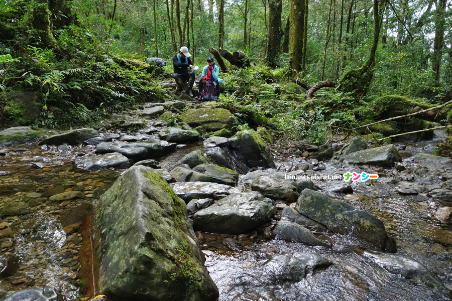 三岔路口續走不久,路過「赫威山」登山口,繼續原始山徑持續上坡,偶有倒木、小淺溪,但都好走。