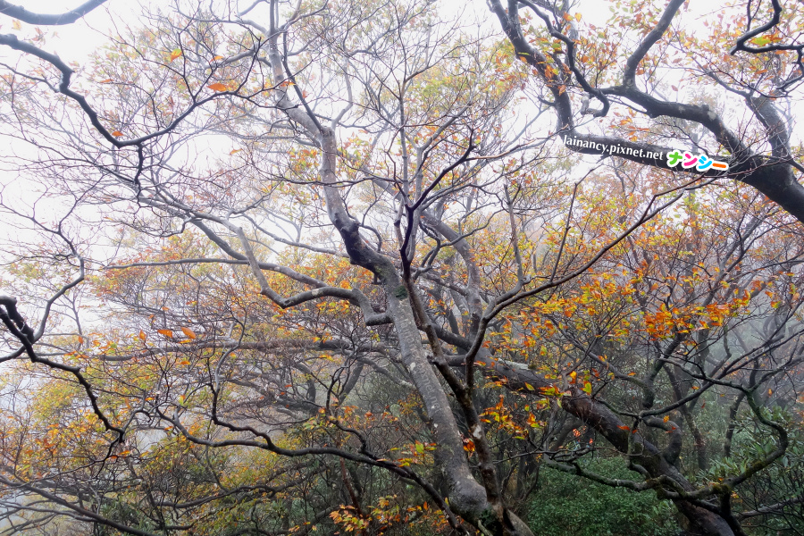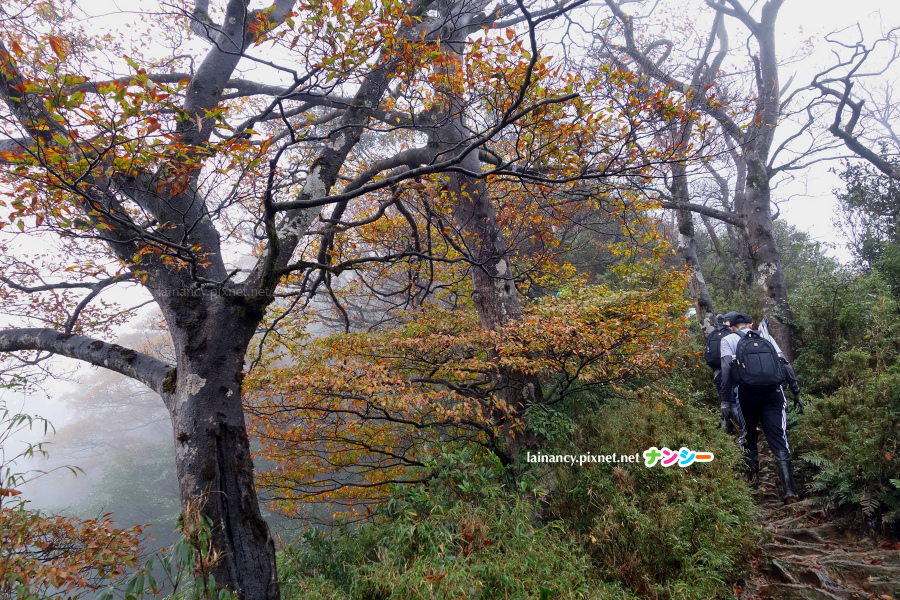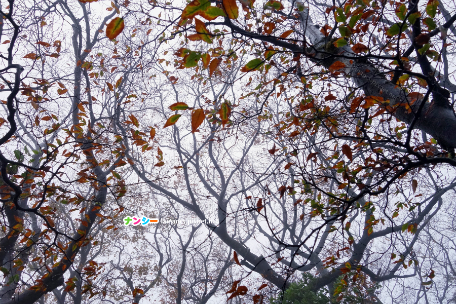 突然天氣變好,有點微弱陽光出現,臺灣山毛櫸的色調鮮艷多了。