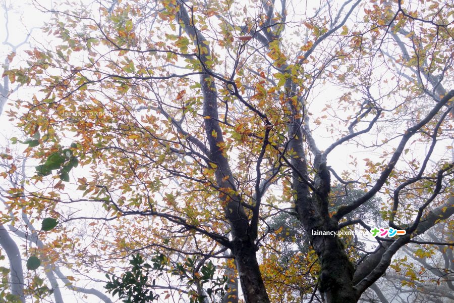 雖然白霧茫茫,金黃色的葉子還是依舊閃耀光芒。