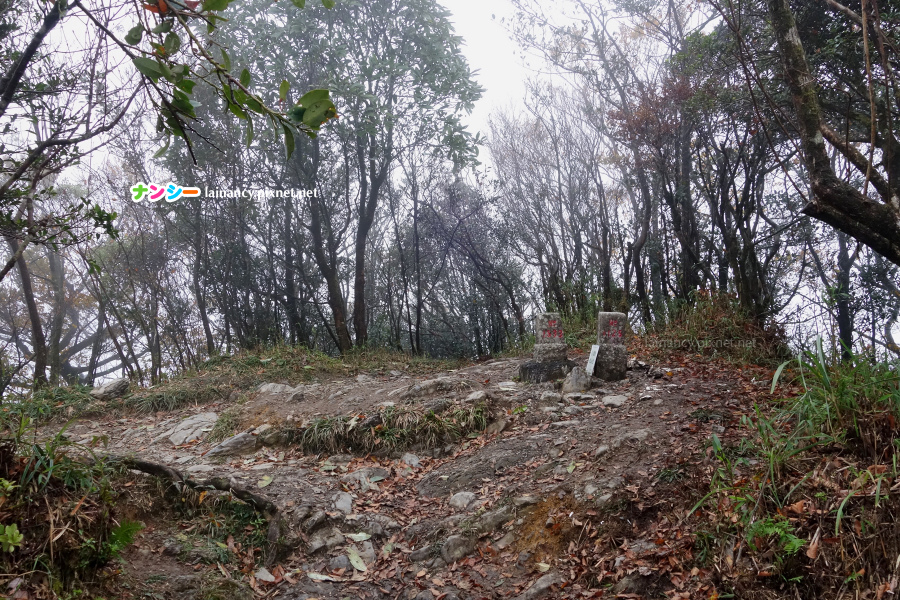 下排圖:北插天山標高 1727 公尺,位在新北市烏來、三峽及桃園市復興三個區域上,不知為何並存著兩顆二等三角點。