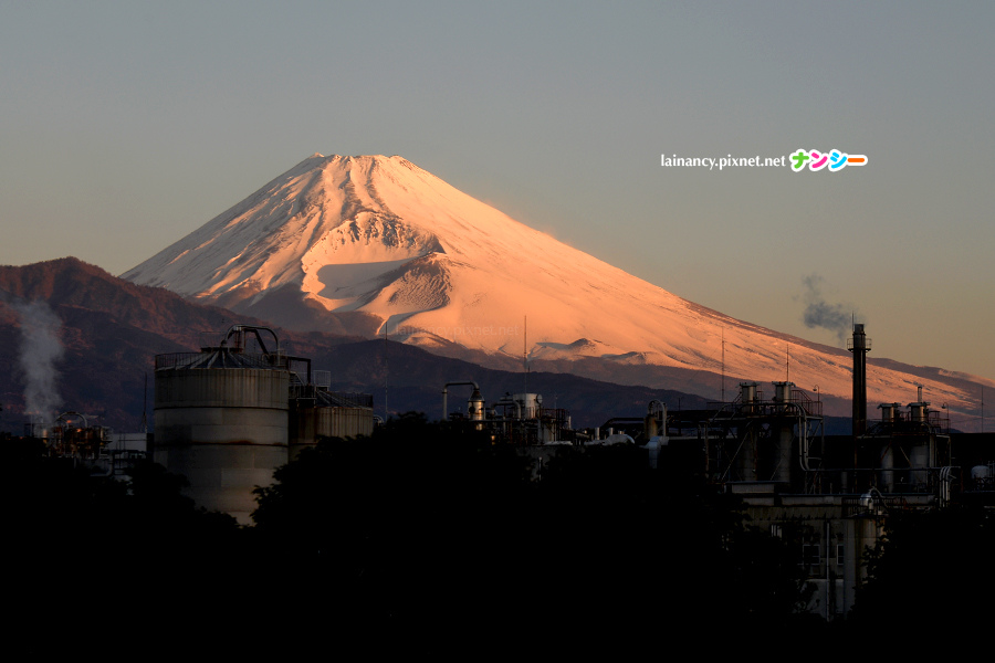 上午 6 點多,起床後拉開窗簾想探究天氣,沒想到瞧見西北邊亮橘的富士山,原來,你就在我的窗外啊~~~