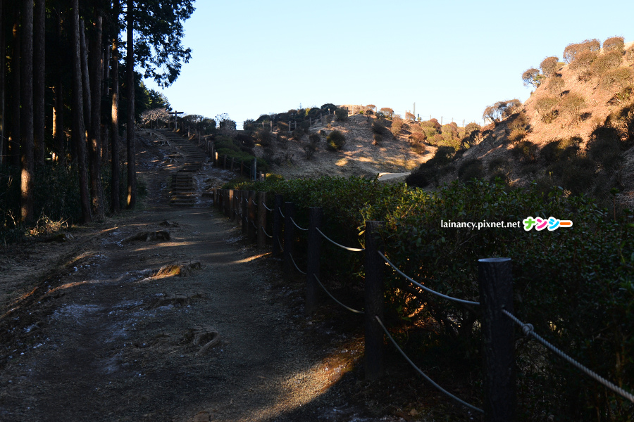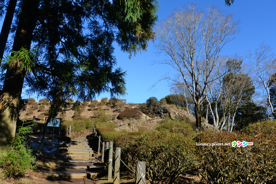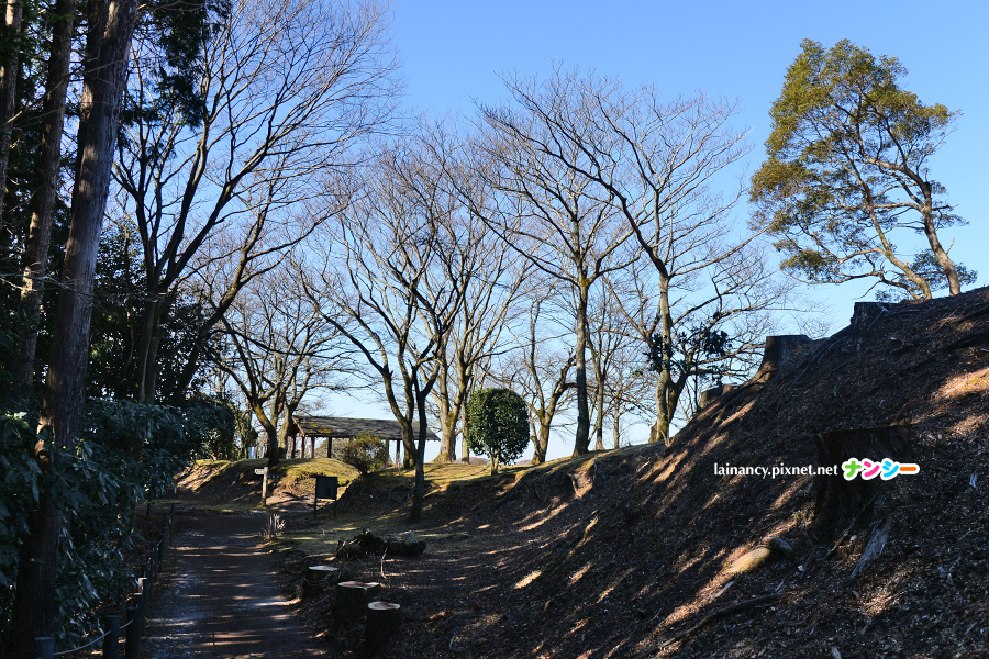 公路將山中城分隔南北兩邊,我先往位在北邊的本丸走,再往南邊的岱崎出丸,算是戰國山城探訪路線,但也沒走齊,