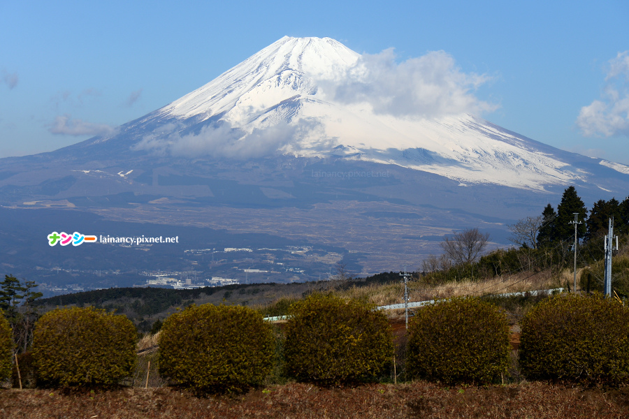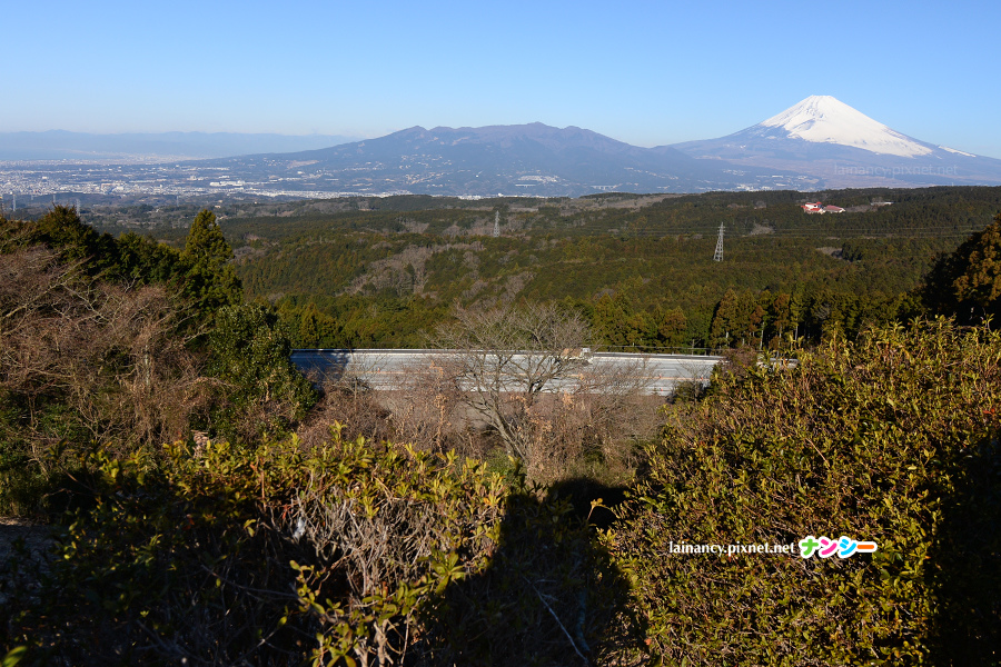 西北邊見到了白雪蓋頭的富士山,左側是「愛鷹連峰」。