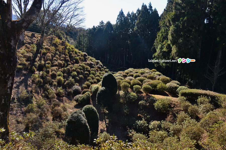 山中城跡裡這類修剪的如圓球般的樹叢是杜鵑,想必花季應該是美不勝收。