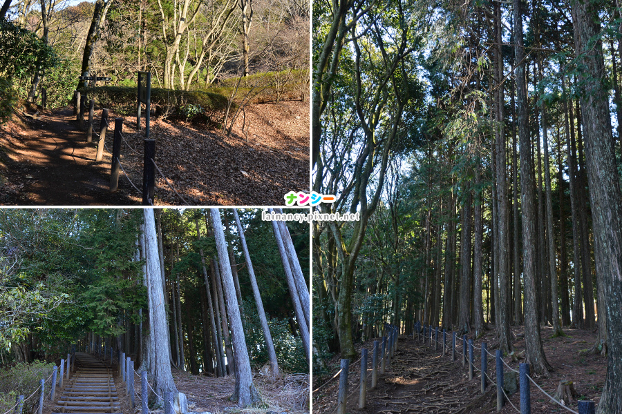 左上:走回溜池旁的三岔路口,右轉往本丸跡。