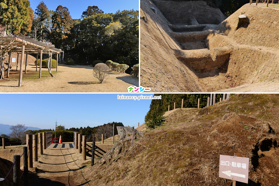 左下:前方走出樹林後是三岔路口,直行往本丸跡,我先右轉往元西櫓跡方向。