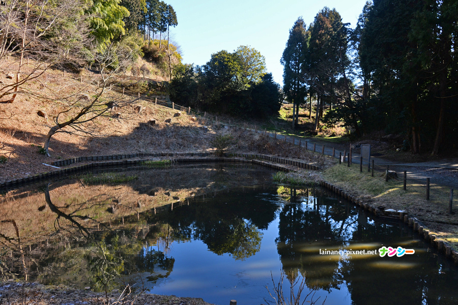 階梯右側是稍早從旁邊走過的田尻の池及路徑。