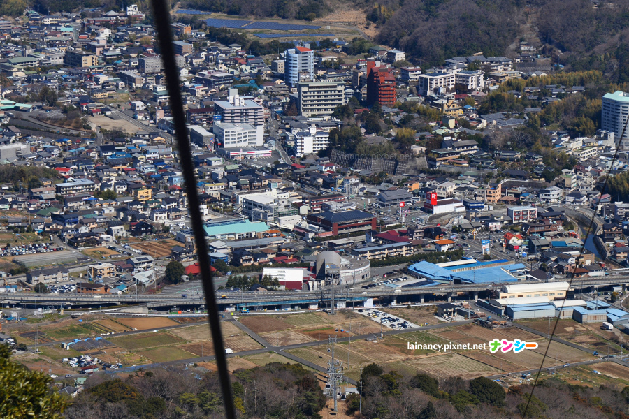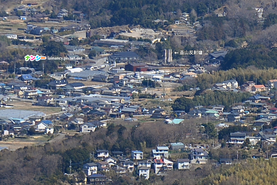 特寫玄岳下方城鎮,可以見到韮山地區最知名的景點「韮山反射爐」,時間不夠,這次就沒有安排前去參觀。