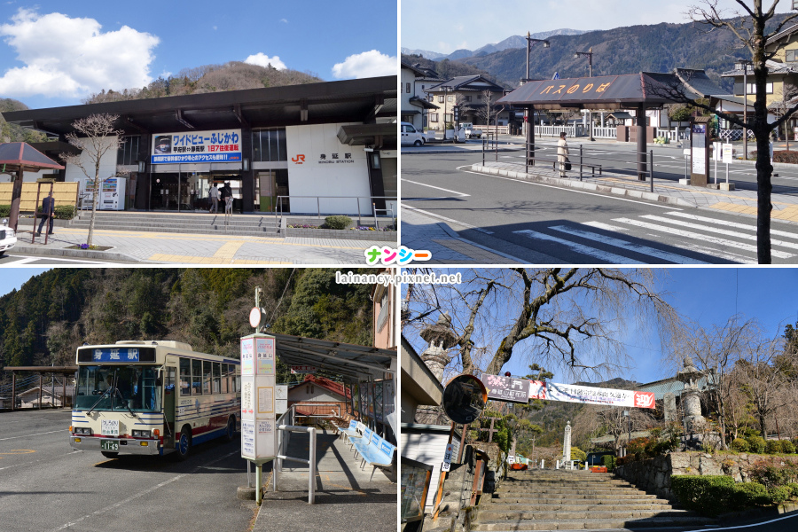 左下:車程 12 分鐘抵達終點身延山巴士站,行先板馬上就切換成開往身延駅,所以回程也在這裡搭車。