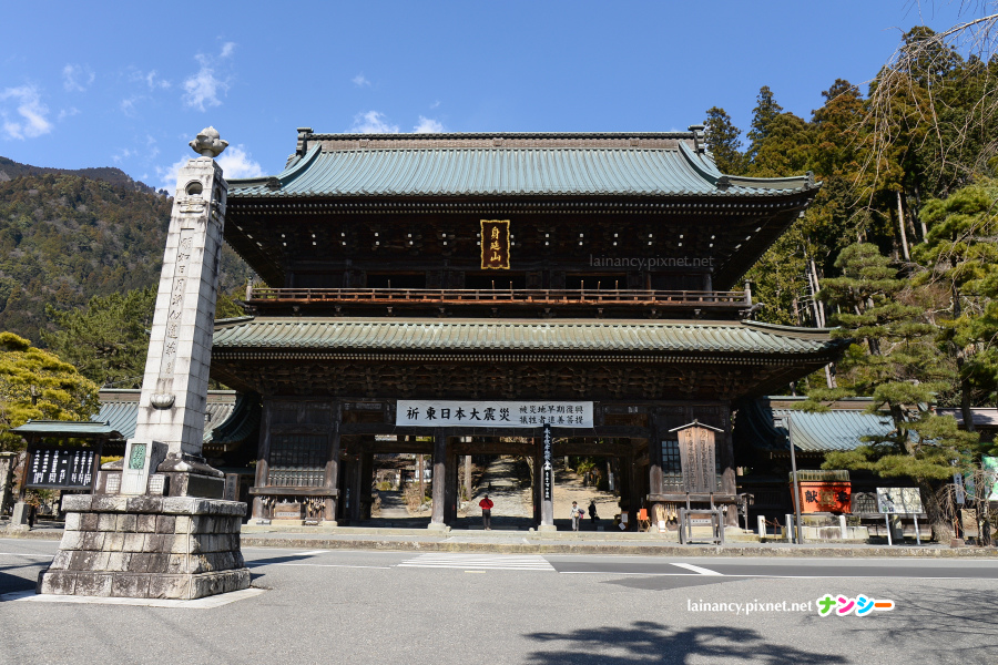身延山觀光案內所的對面就是很有氣勢的久遠寺「三門」。
