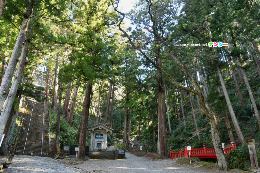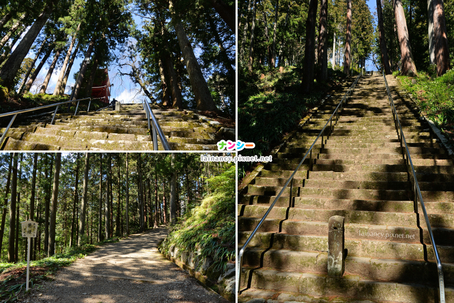 參道盡頭左邊是「菩提梯」共有 287 階,這階梯看起來蠻陡的,那就回程再走下來吧,我決定悠哉走道路上久遠寺,