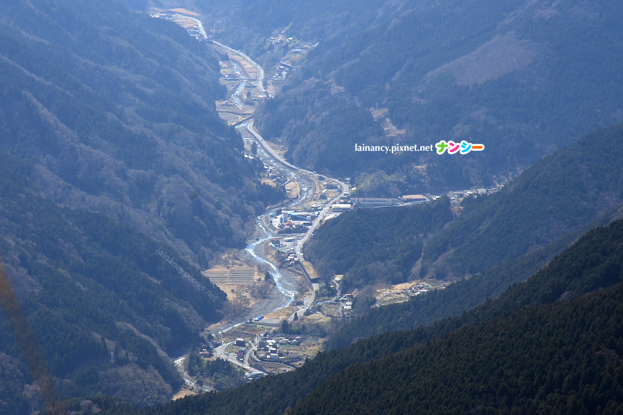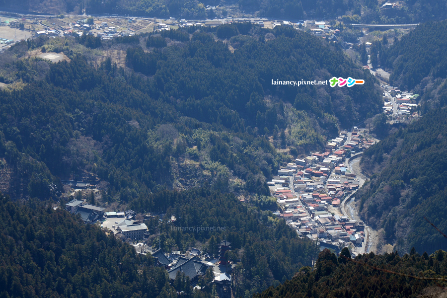 廣角視野,下方是塩之沢駅北邊。然後道別身延山,搭 12 點整的纜車返回久遠寺駅。