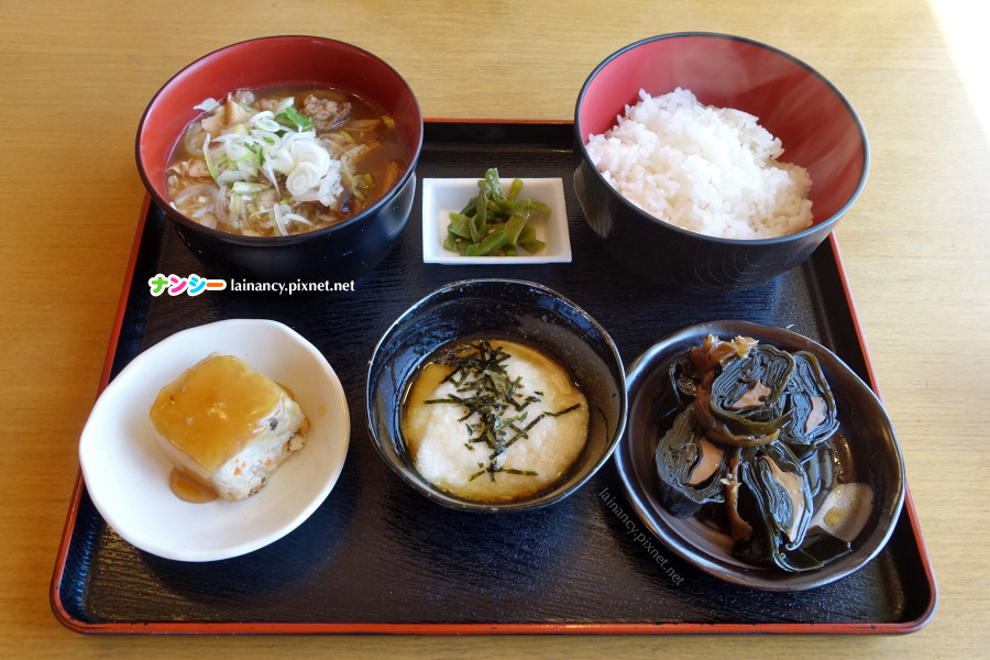 付小鉢三品及漬物的身延庵豚汁定食 1200 日幣,其實我是來吃小鉢的,出發前就看中這個「身延ゆば昆布巻」,