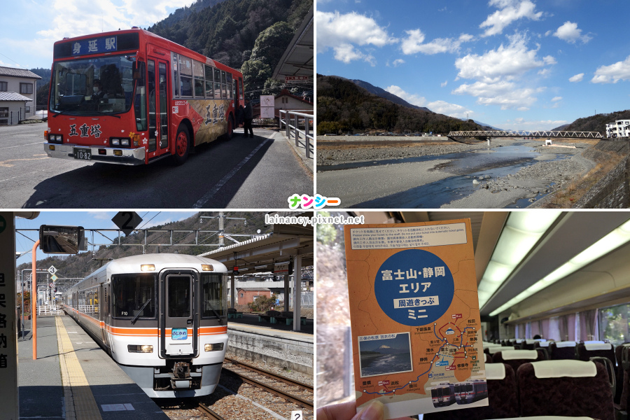 左上:從沼津出發,花了 1 小時 43 分搭車轉乘抵達身延車站,這段車程依舊仰賴「富士山.静岡エリア周遊きっぷ ミニ」三日 PASS,