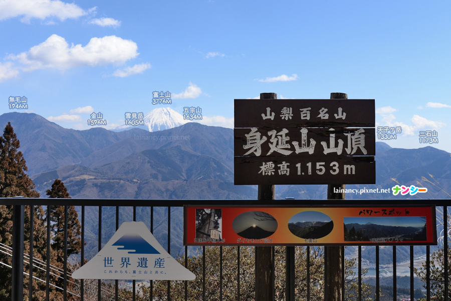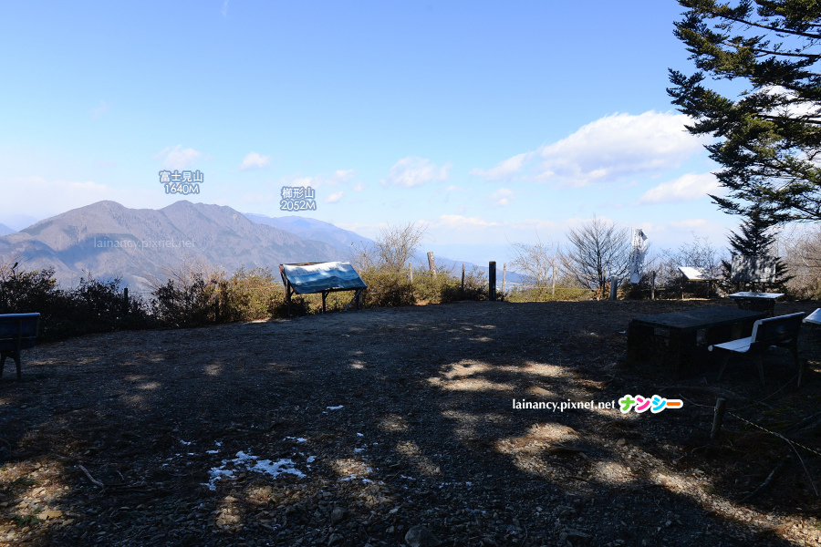 北側展望台地上還有些許殘雪,以高度來說,這邊應該算是身延山的山頂,標高 1,153 公尺,山梨百名山。